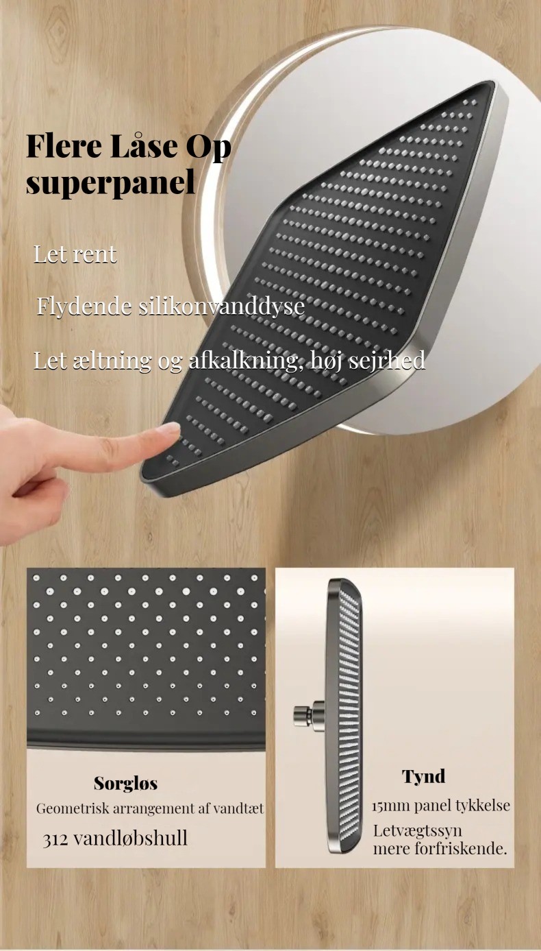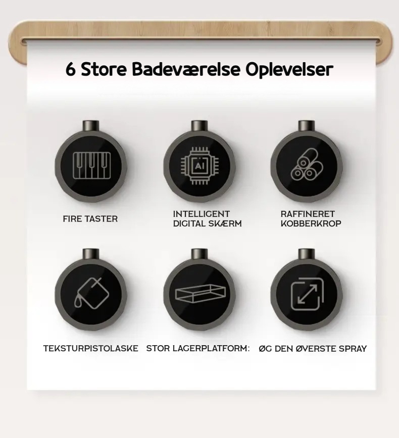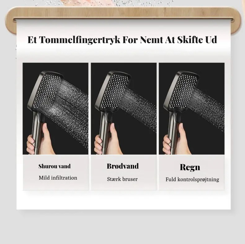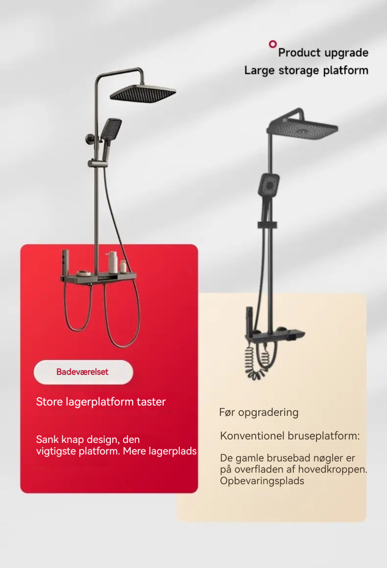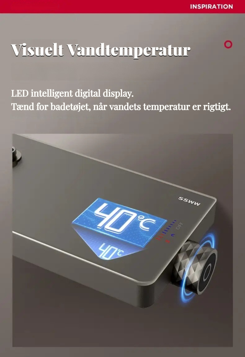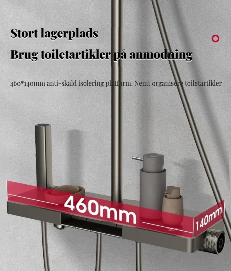 Brusersæt i seks dele. Det har en smart termostat, digitalt display, hydronisk kraft, messinghus og fire indstillingsmuligheder! Sættet kan refunderes for lækager!