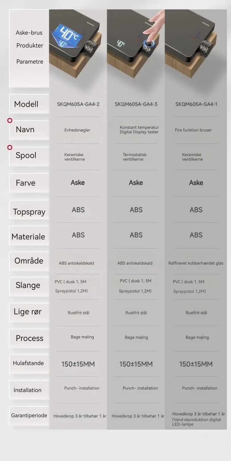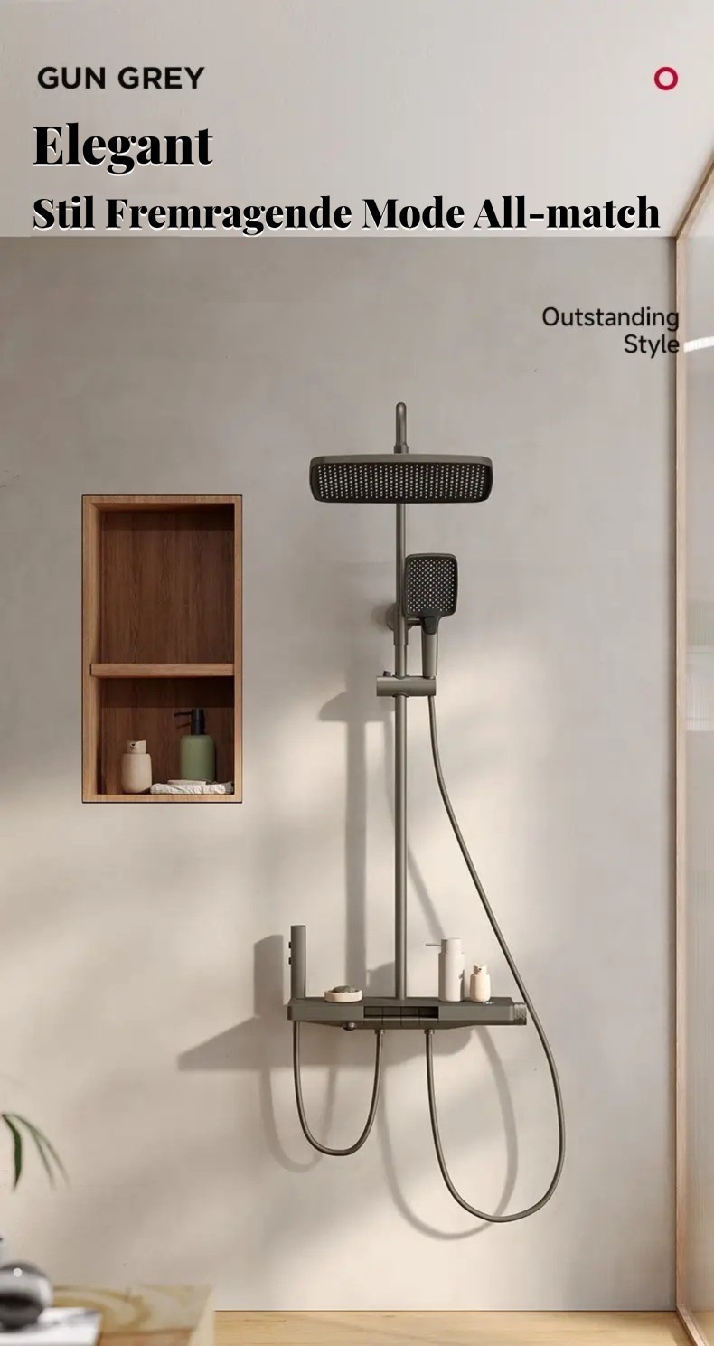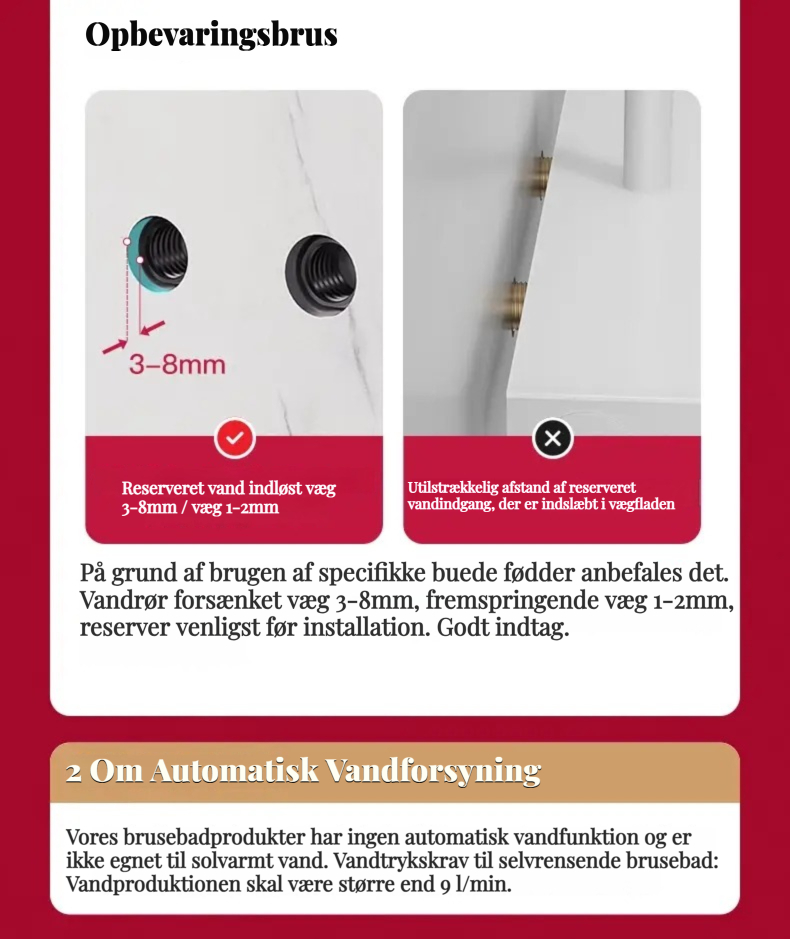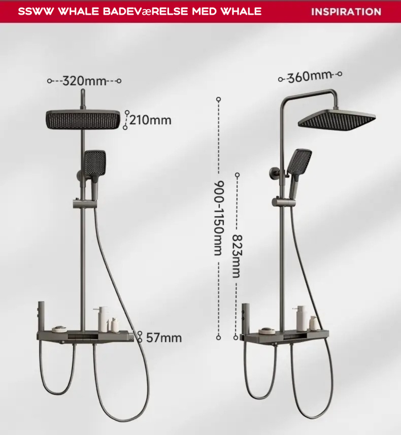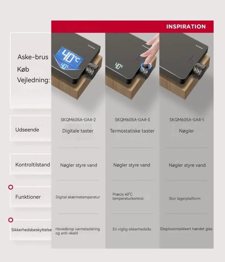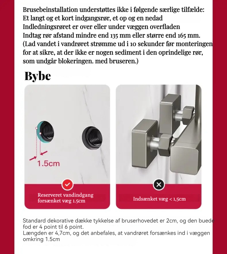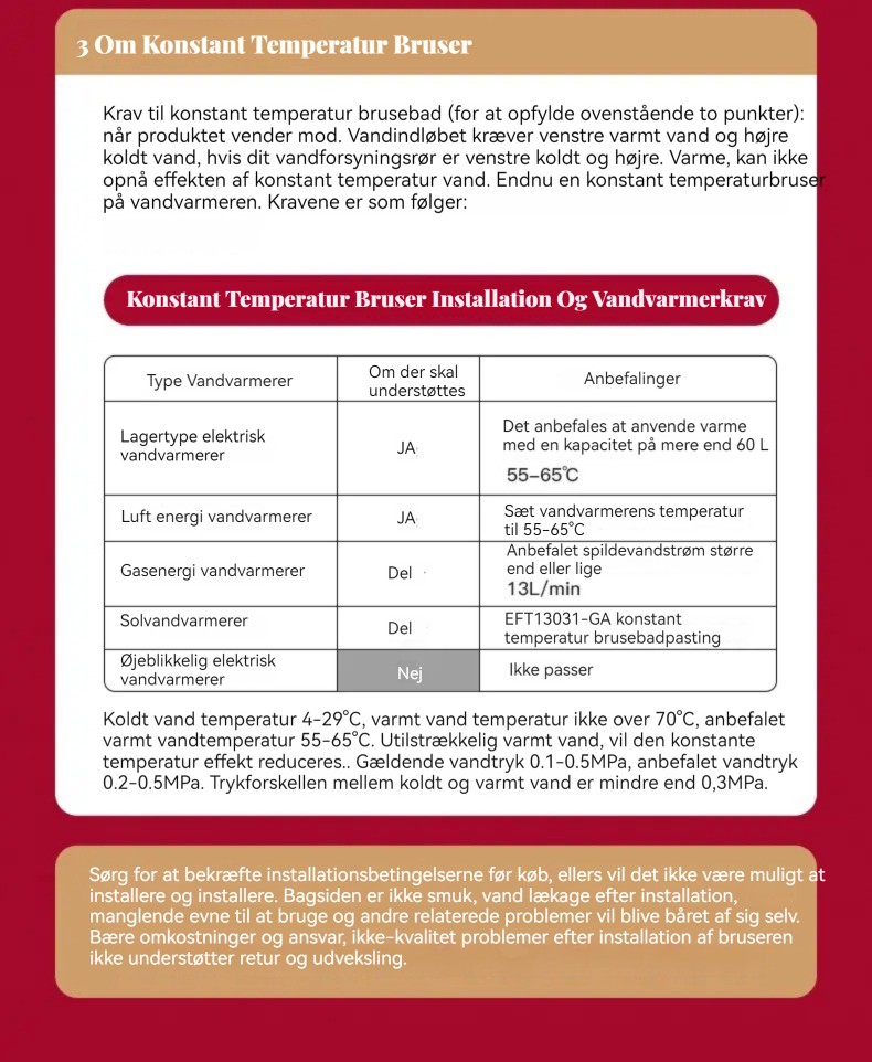 Brusersæt i seks dele. Det har en smart termostat, digitalt display, hydronisk kraft, messinghus og fire indstillingsmuligheder! Sættet kan refunderes for lækager!